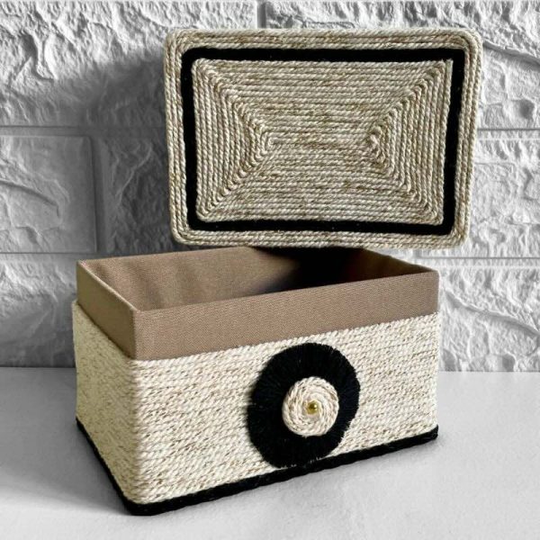 Una caja decorativa pensada para organizar pequeños objetos cotidianos a través de un diseño marcado y expresivo.