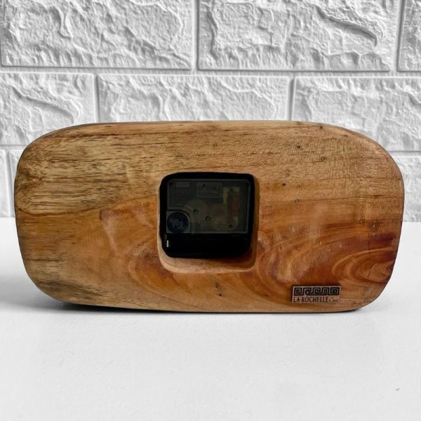 - Forma orgánica: El cuerpo de madera presenta líneas suavizadas y contornos libres que respetan la expresión propia del material. Las variaciones naturales de espesor y las aristas redondeadas permiten una lectura visual fluida y estable, aportando una sensación de calma y continuidad. La superficie ofrece una presencia cálida y agradable, reforzando la relación directa entre el objeto y el espacio que ocupa.